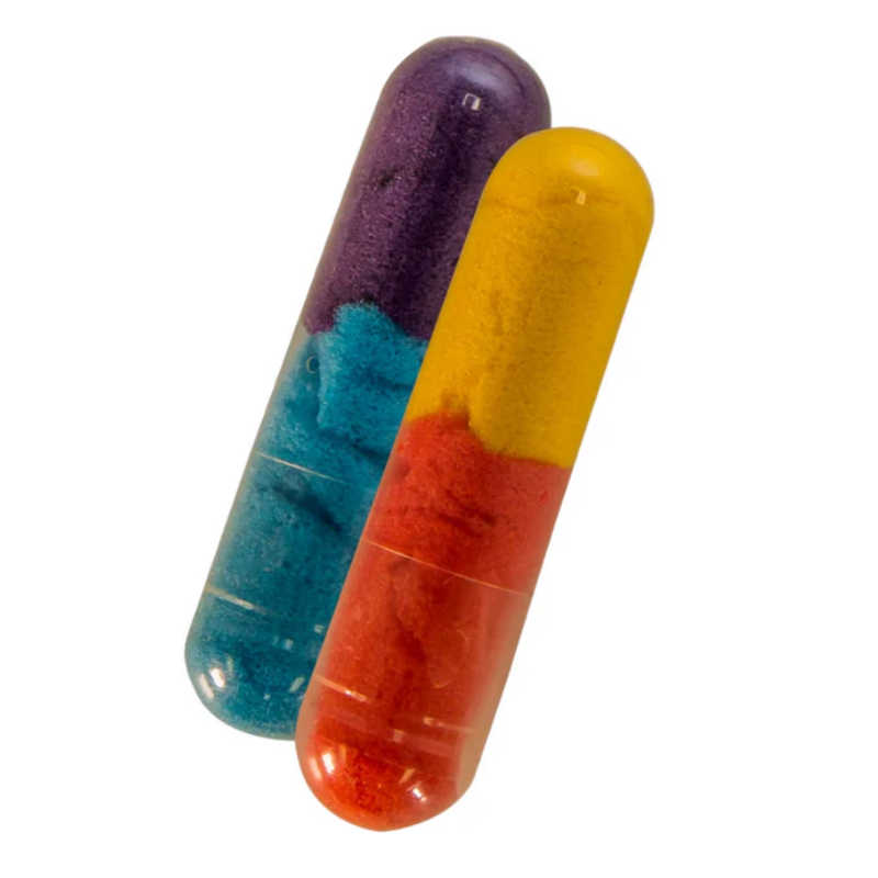 Bath Beans are a fun new way to take a bath! These magical food-grade gelatin capsules release two sponge toys from each capsule when dropped into warm bathwater. The capsules dissolve in 90 seconds, leaving behind the cutest vehicle-shaped sponge toys!