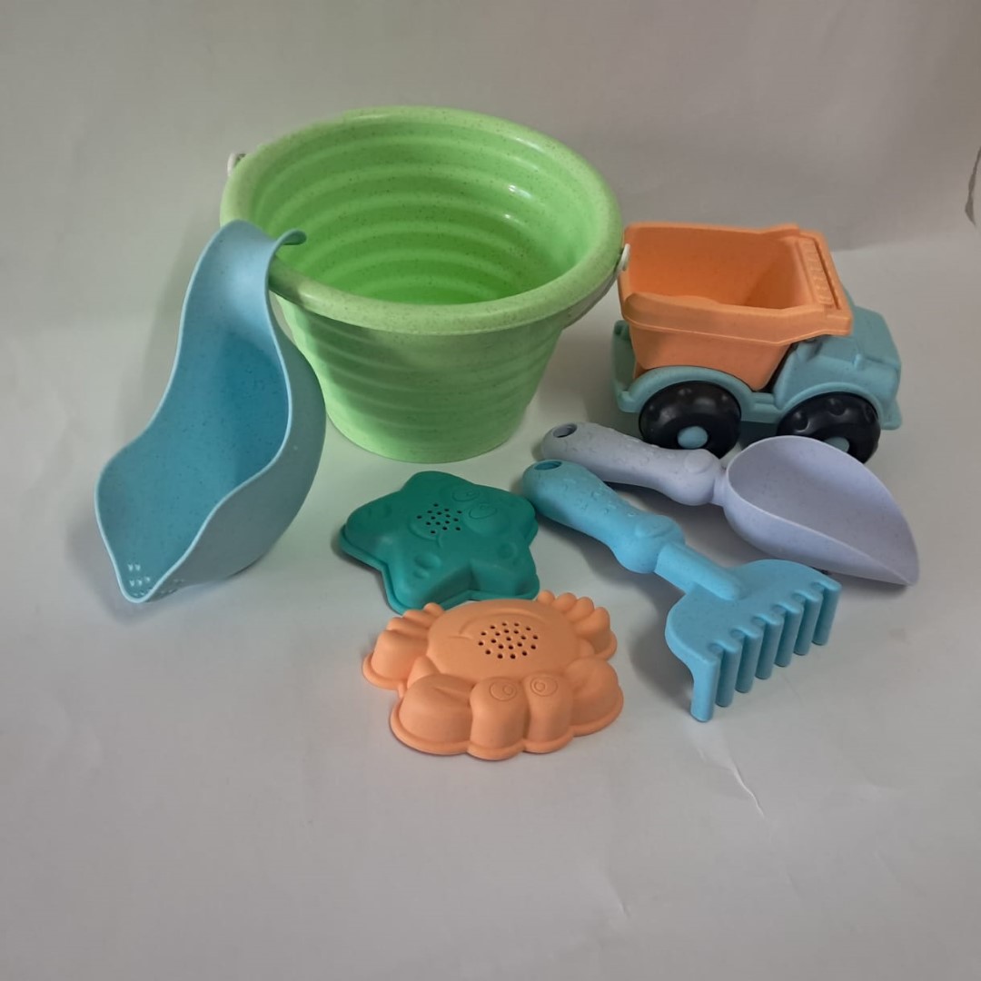 The set includes: 1 x bucket, 1 x dump truck, 1 x rake, 1 x shovel and 3 x sand moulds with assorted designs. Constructed from durable plastic, the set can be rinsed and reused over and over again.