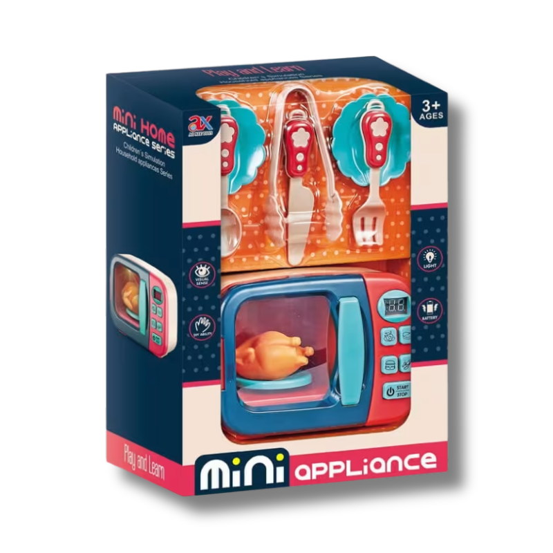 With the Toy Microwave and Accessories, you can help little chefs have their own kitchen. Its colorful and safe design allows them to simulate everyday activities, such as heating delicious dishes, chicken, or even defrosting invented treats with just the push of a few buttons.