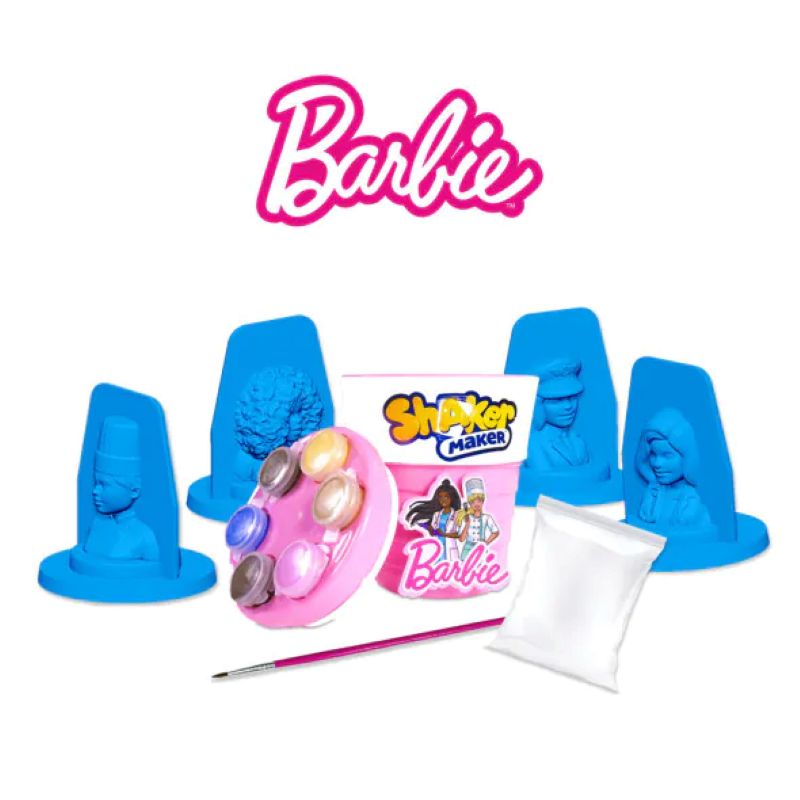 Introducing Shaker Maker Barbie – a fun and interactive toy that lets you create 4 unique characters for hours of entertainment.