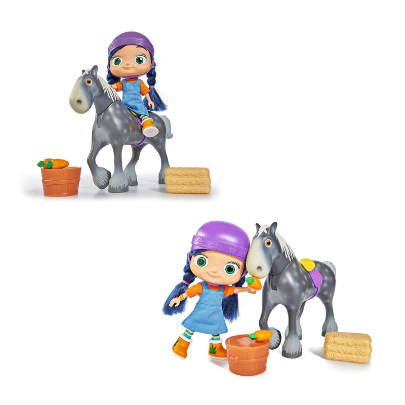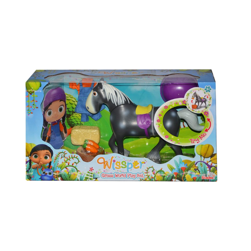 Contains: 1 horse outfit for a 23cm wissper doll* ( Doll sold seperately), 1 Herbert the Horse figure with magnetic nose, 2 carrots, 1 food trough, 1 bale of hay.